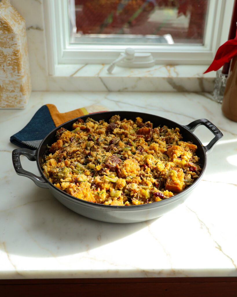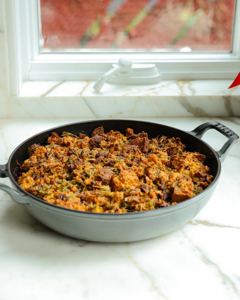 This recipe has been updated from its 2021 version, and I can confidently say this 2025 rendition is the best vegetarian cornbread and cranberry stuffing I have ever made. Full stop.